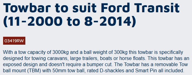 You will need to order two more components to make the towbar complete.