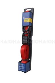 Polypropylene webbing strap features steel hooks with locking D-rings for more load securing options. Large moulded handle provides better grip. Heavy duty automatic locking ratchet action with thumb release. Twin Pack